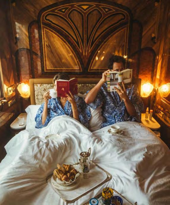 Nuestras suites reimaginadas, restauradas por artesanos franceses, combinan el diseño Art Deco con los paisajes que atravesamos, sumergiendo a los huéspedes en colores, patrones y texturas vibrantes inspirados en diseñadores como Dufrene y Lalique.