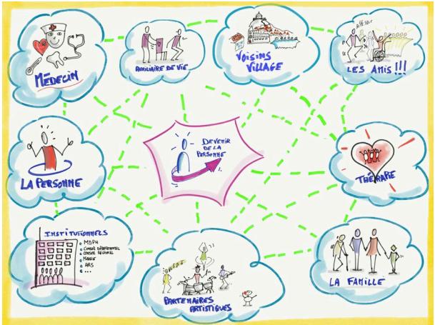 Chaque habitant peut donc poursuivre sa relation avec son médecin, son infirmière, mais également son aide à domicile. La responsable du Hameau assure la coordination des interventions sociales et médicosociales autour de chaque habitant. Elle veille notamment à ajuster en permanence les interventions externes, en fonction de l'évolution des besoins des habitants.