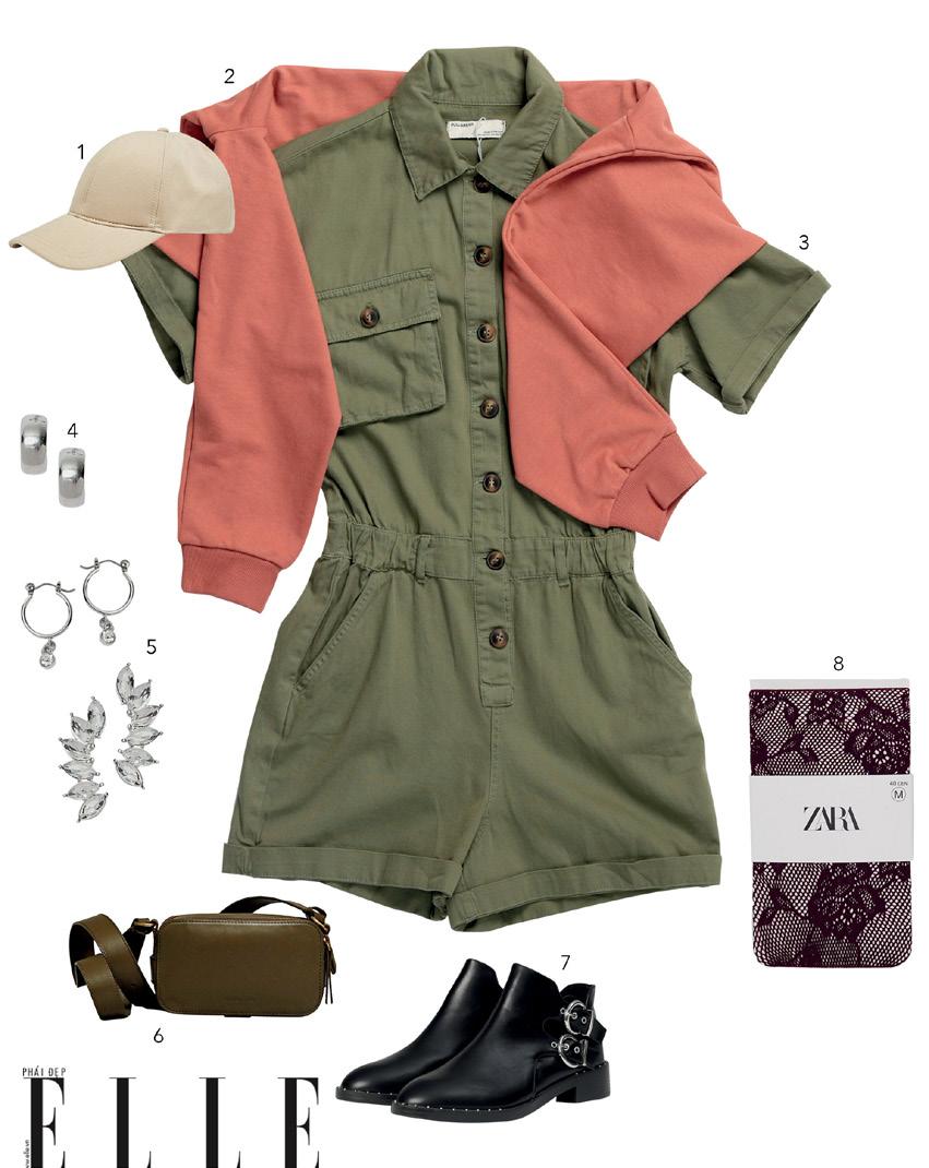 Cách kết hợp áo sweatshirt khoác hờ lên vai tạo nên phong cách preppy năng động. Linh hoạt kết hợp cùng quần tất ren và mũ lưỡi trai cho vẻ ngoài nữ tính năng động.