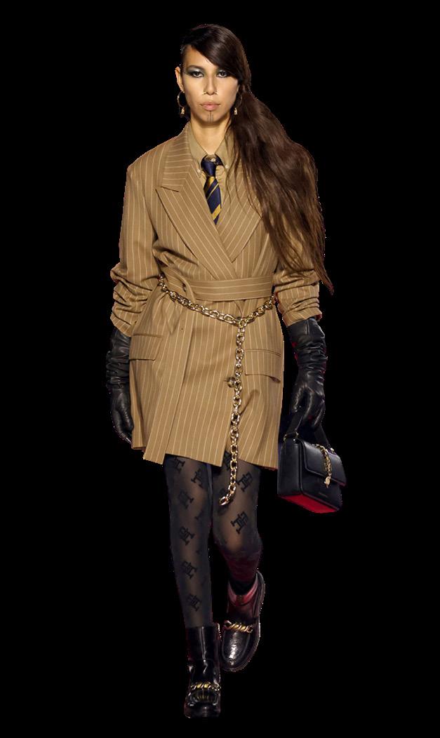 T với họa tiết monogram TH trên nền tảng “See Now, Buy Now” (Thấy ngay, mua ngay) của Tommy Hilfiger đưa người hâm mộ của thương hiệu đắm chìm vào một show diễn thực tế ảo song song, nơi bộ sưu tập trở thành cầu nối giữa cuộc sống đời thực và vũ trụ giả tưởng. Các khách mời VIP bao gồm Travis Barker, Kourtney Kardashian, Kris Jenner, Shawn Mendes, Kate Moss và John Legend.