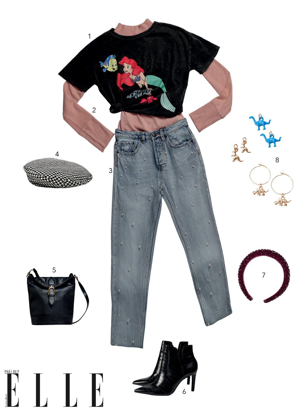 Mỗi nhân vật hoạt hình đều gắn liền với kỷ niệm tuổi thơ đáng nhớ. Cùng với quần jeans đính đá, băng đô bản to, đừng quên kéo dài đôi chân bằng bốt cao gót mũi nhọn.