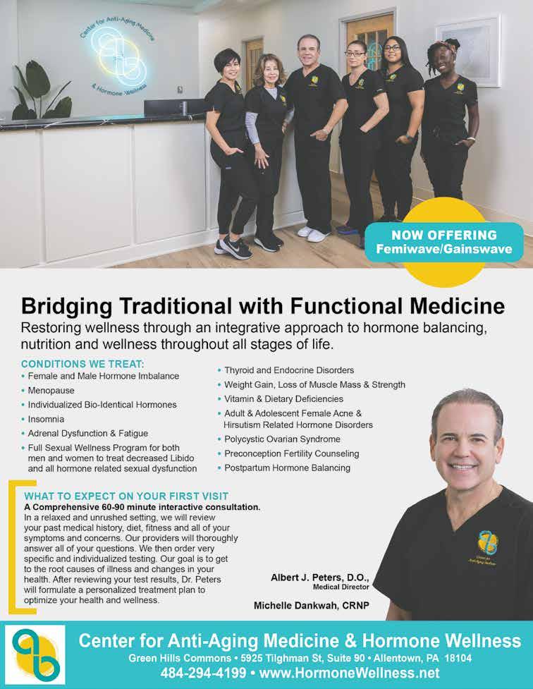 Bethlehem Nutrition & Wellness Center, we give you the tools to bring you and your family into a state of optimal health. Using the most advanced nutritional testing available, we look for the underlying cause of your health problems. Once the underlying cause is addressed not only do symptoms go away, but your overall health can also be greatly improved. See ad, page 12.