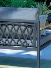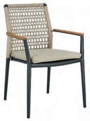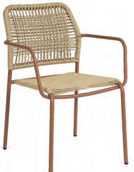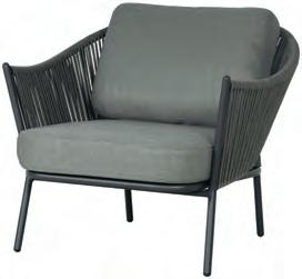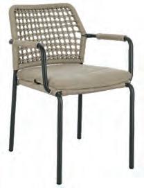 Tressage en corde polyester. Coussin avec enveloppe amovible en polyester. Empilable.