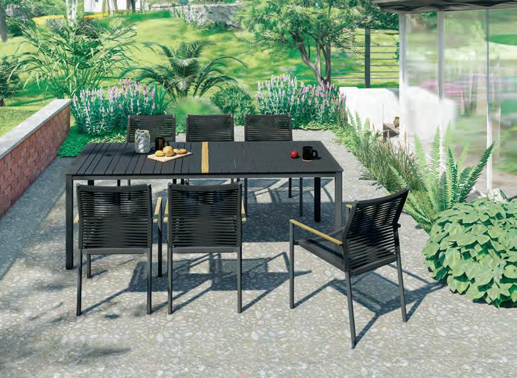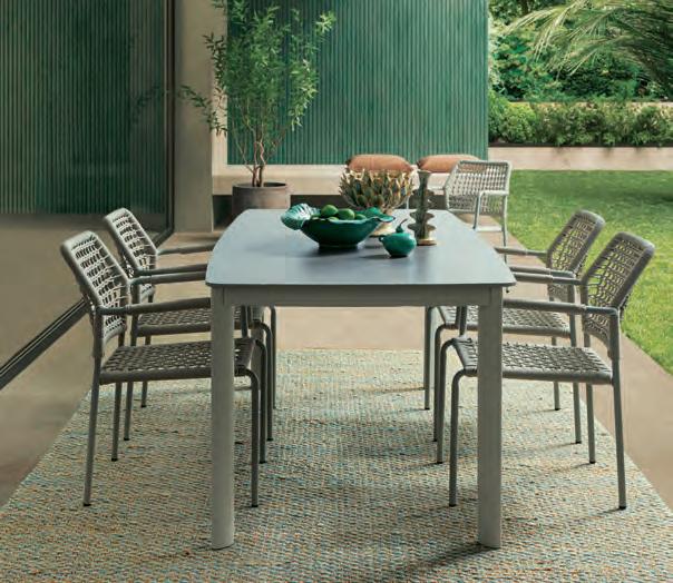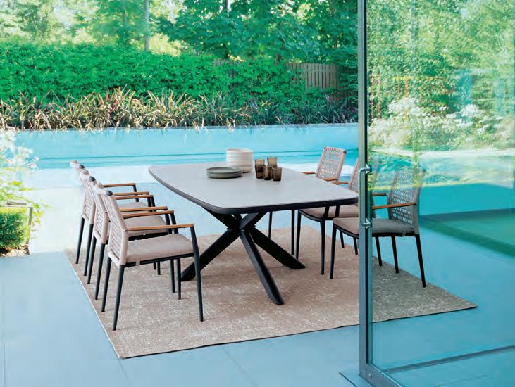 A Table de jardin Alcora. Piètement en alu thermolaqué. Plateau en pierre frittée. LoxLaxH: 180x90x75 cm.