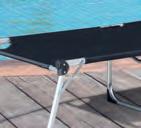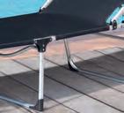 A Chaise longue à position assise/couchée réglable. Peu encombrante à ranger, car pliante. Rayon pour gobelet, etc. En vinyle lavable, sur cadre en métal traité par poudrage. Portance: max. 110 kg. Dim. (LaxLoxH): env. 65x85x110 cm.