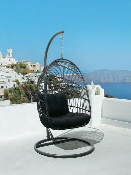 G Fauteuil suspendu Dominik, pliable. Structure en acier thermolaqué. Cannage synthétique en PE, cordes en polyester. Coussin en polyester. Charge, max. 160 kg. LaxPxH: corbeille 88x61x112 cm. Haut. totale 195 cm.