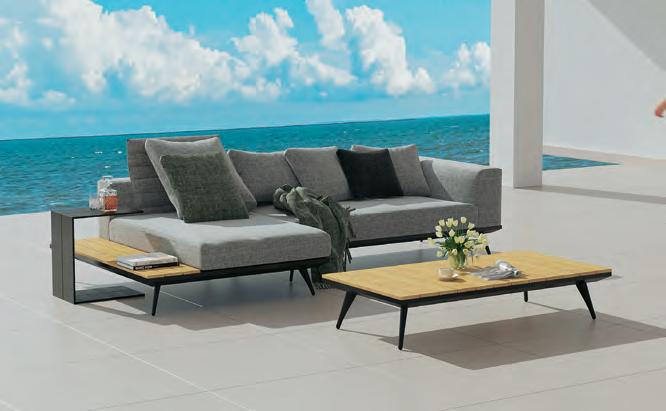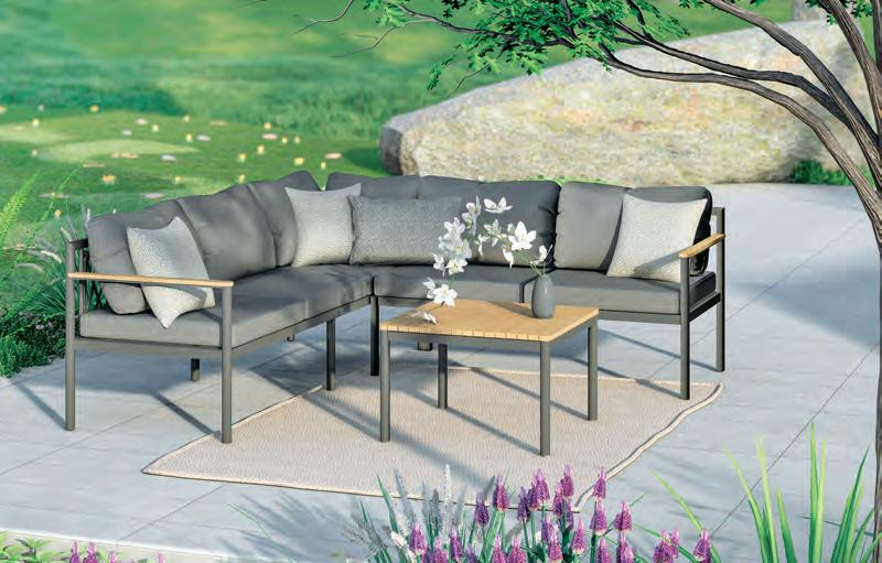 H Salon de jardin Diamo, 4 éléments. Structure en aluminium thermolaqué, gris foncé. Accoudoirs et coussins en couleur sable. Plateau de table en teck clair. Dim. (LoxPxH): canapé, 196x82x70 cm, 2 fauteuil, 72x82x70 cm, table, 120x75x45 cm. Livraison sans coussins décoratifs. T50 627 48 19 80.–