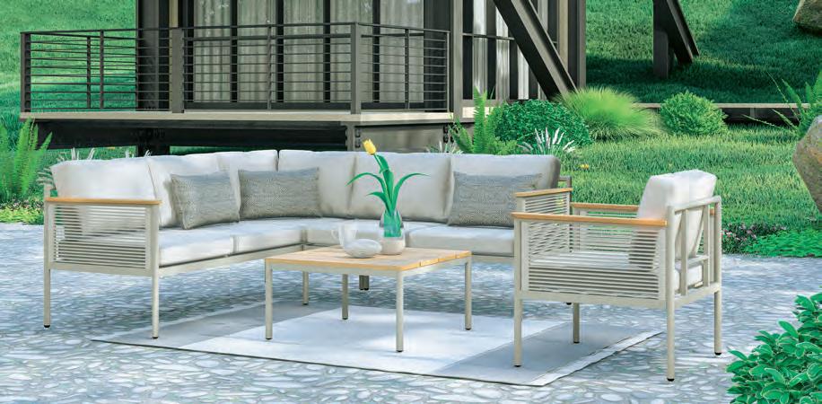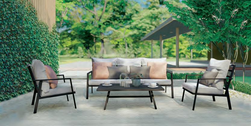 D Salon de jardin Miravet, 4 éléments. Structure en alu thermolaqué. Tressage en corde polyester. Coussins à enveloppe amovible en polyester. Plateau de table en pierre frittée. LoxPxH: canapé 148x81x73,5 cm, fauteuil 68x81x73,5 cm, table 120x60x39 cm. T50 485 12 b eige T5 0 485 37 anthracite-vert T5 0 485 70 t aupe 12 90.–