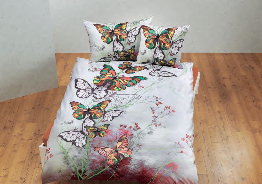 B Garniture en satin fin. 100% coton. Avec glissière. Lavable à 60°.