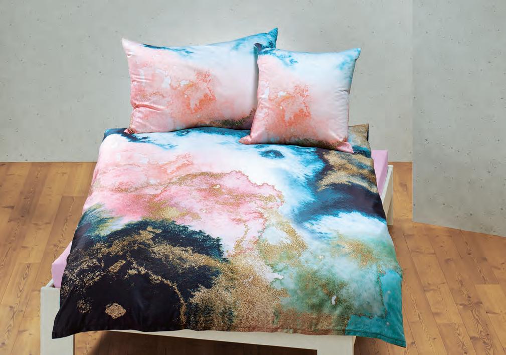 B Garniture en satin. 100% coton. Avec glissière. Lavable à 60°. Taie d’oreiller