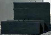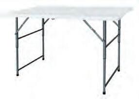E 3-fach höhenverstellbarer Klapptisch. KunststoffKonstruktion mit Metalluntergestell pulverbeschichtet. Dank der Kofferform leicht zu transportieren. BxTxH ca. 122x60x52–75 cm. Belastbarkeit ca. 80 kg.