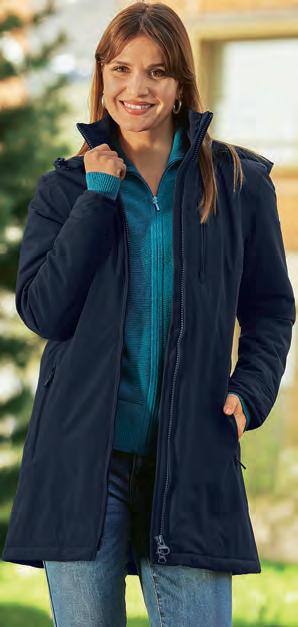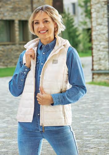 B Veste matelassée avec garnissage genre duvet et capuchon amovible. Finition hydrofuge. Merveilleusement légère – idéale pour la misaison. Long. dos env. 65.5 cm (taille 38). Tissu et garnissage 100% polyester.