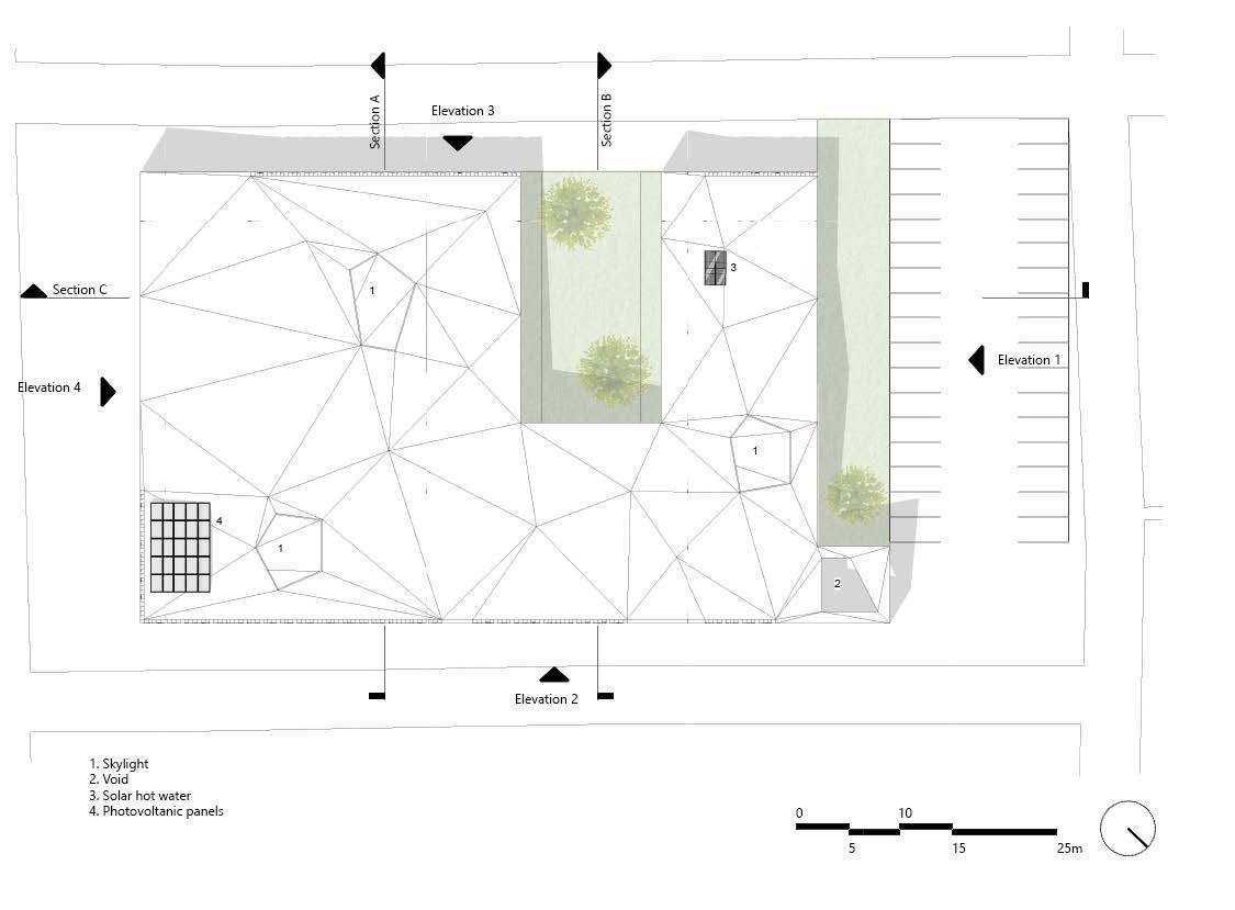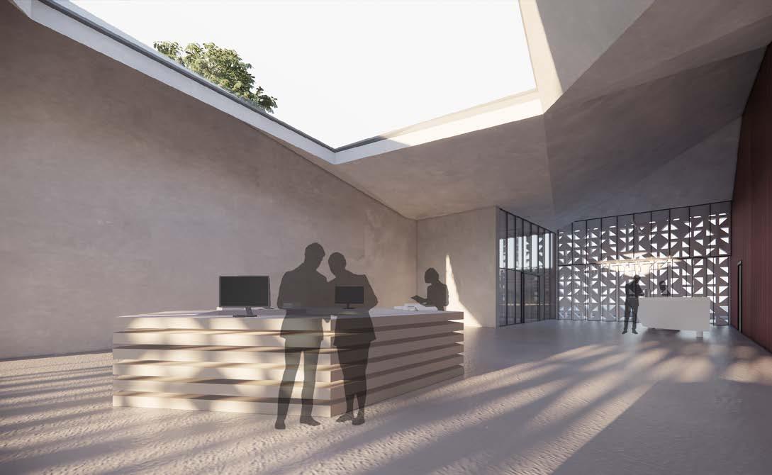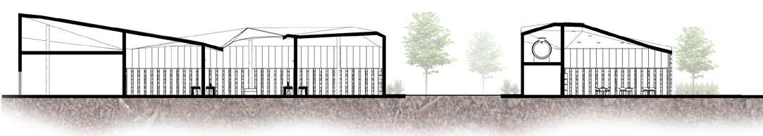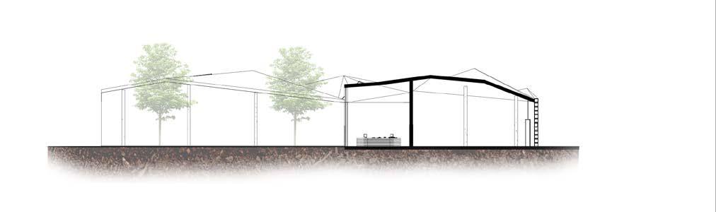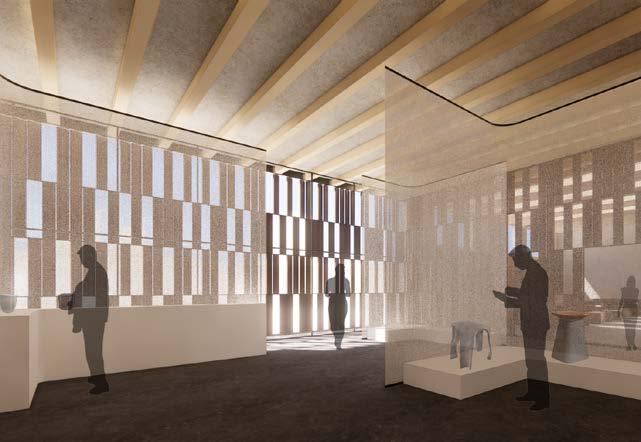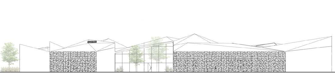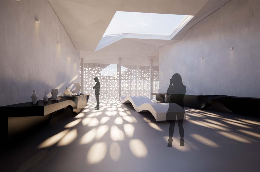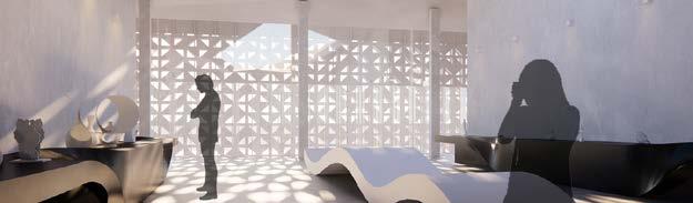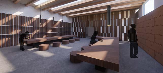 The workshop will be used for creating a playground for visitors to make clay from coffee watse whereas the exhibition area is for displaying the products of artist made from coffee waste. Each panel of curtain walls in this area will be made from coffee grounds to illustrate the concept of recycling coffee waste. These panel can rotate to receive sunlight and create different visual.