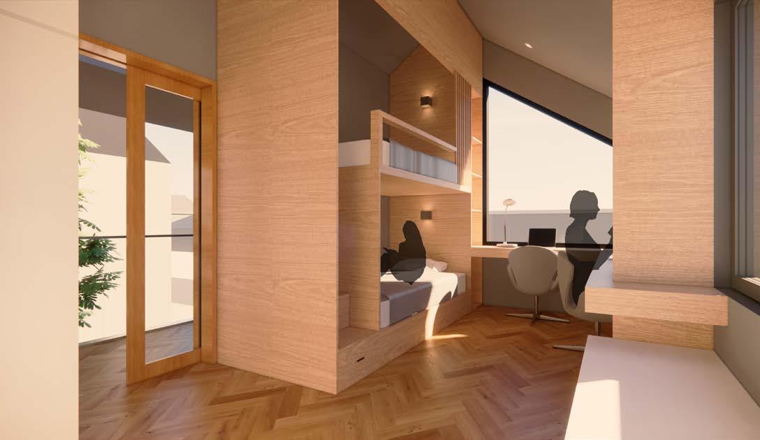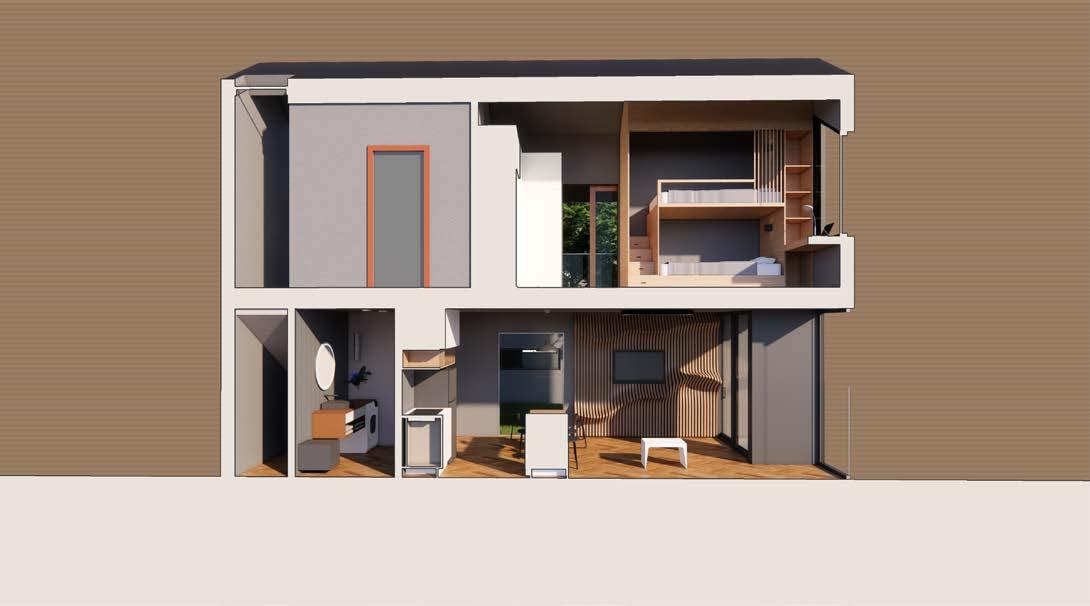 The project is a Revit exercise to design a student village for Swinburne student. The chosen site located in a friendly neighbourhood, therefore, the design was take after the friendly and warm atmosphere. As the houses are for students, it also combines with modern and dynamic features. This project was the first project designed when started studying in Melbourne, it helped me become familiar with the building code in Australia and the environment. The project offered me a chance to critical thinking how to maximised a small space for three people living together.