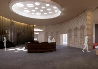 The lobby has to present the atmosphere of a coffee museum; therefore, the design idea was to create an area for a coffee tree, which can be the main highlight in the lobby, which will illustrate the concept and spread the aroma of coffee beans to the surrounding. The entrance also uses a warm and dark brown tone for a coffee atmosphere.