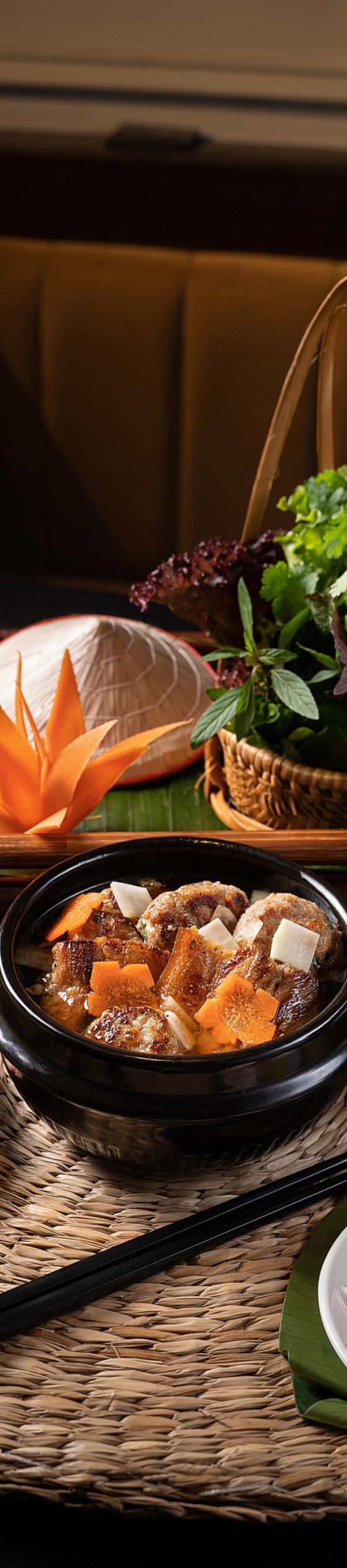 Hemibagrus fish, omental fat, spring onion, turmeric, rice noodle
