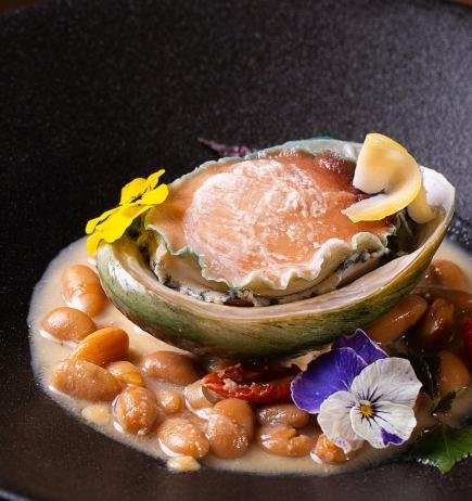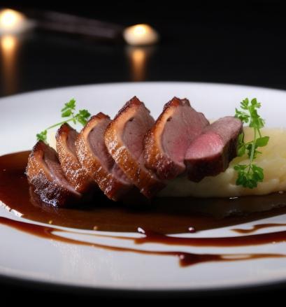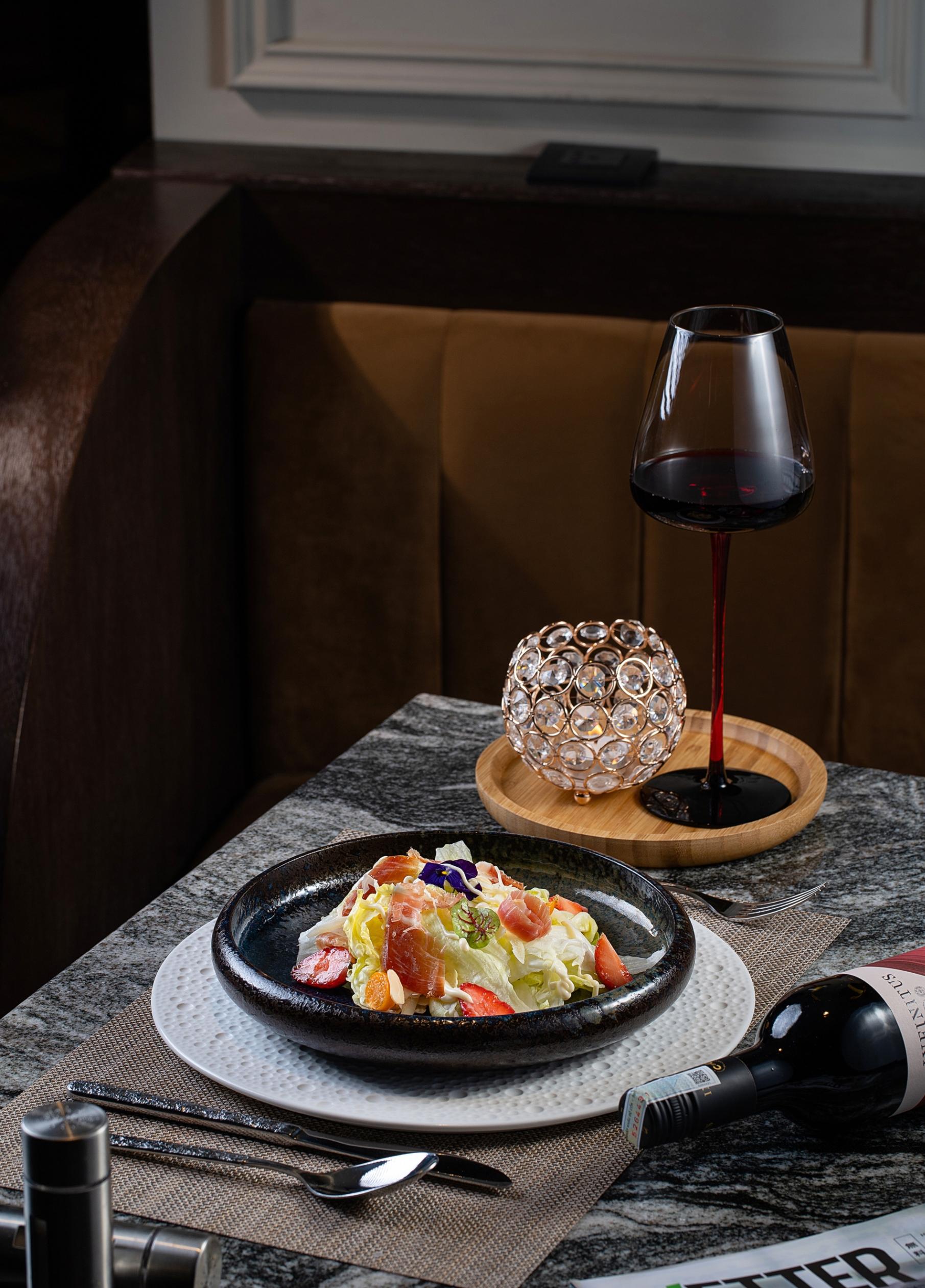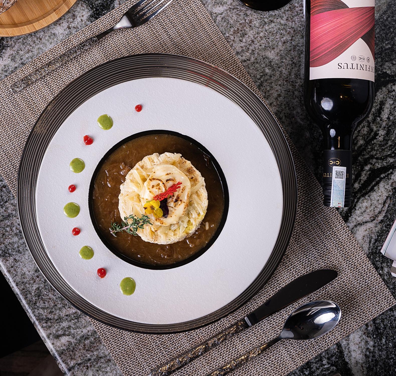 Foie gras, Cinnamon braised apples, red wine sauce 420,000