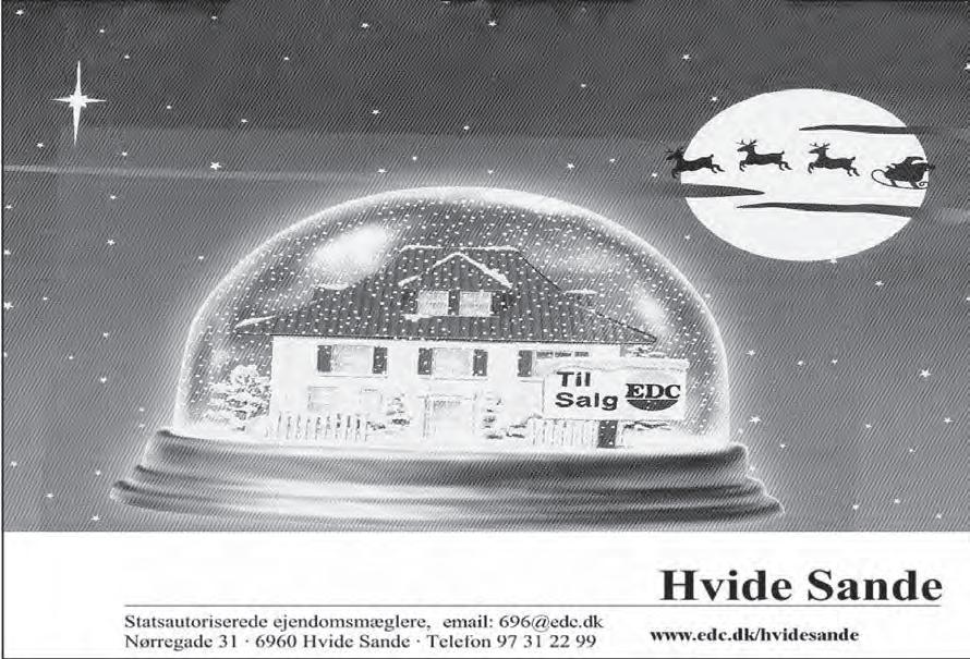 Ywl o æ Kle’t 2005 78 KNUD SØNDERGAARD Fiskeeksport ApS 6960 Hvide Sande Telf. 96 59 14 00 Fax 97 31 27 71 Kent Heide, tlf. 97 31 19 13 Telf. privat 97 31 14 14 Søren Søndergaard, tlf. 97 31 15 20 Hver dag mellem 12.00-16.00 i Restauranten: – Spis alt hvad du kan af pizza og salatbuffet KUN kr. 39,Vi ønsker alle en hyggelig jul samt et lykkebringende nytår Du går aldrig forgæves hos boghandleren... Hvide Sande Boghandel 6960 HVIDE SANDE - TLF. 97 31 13 40