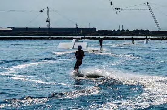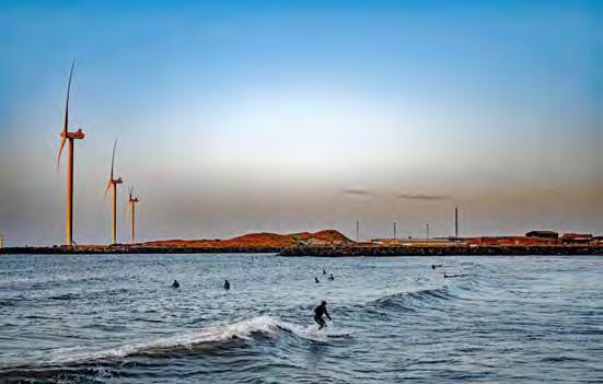 Foto: Johannes Tarp. Surfere syd for indsejlingen.