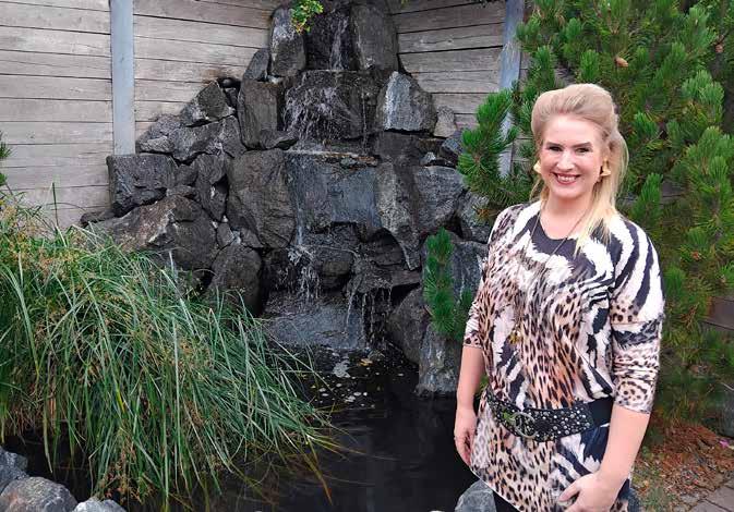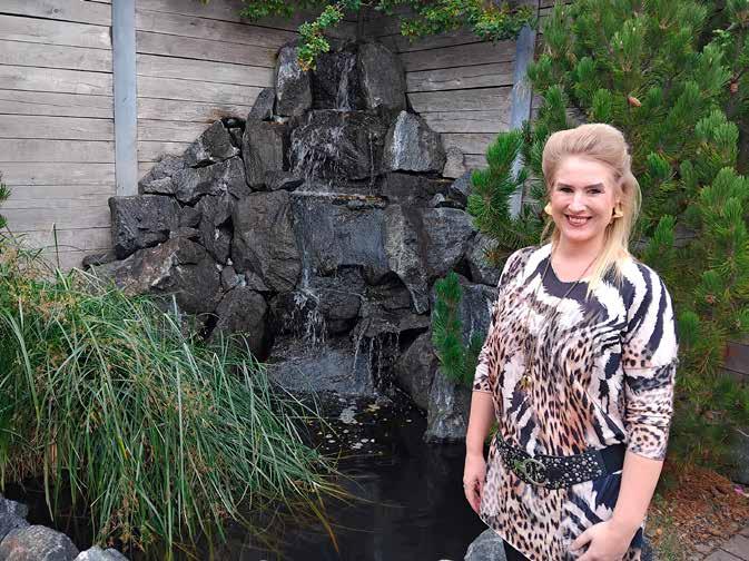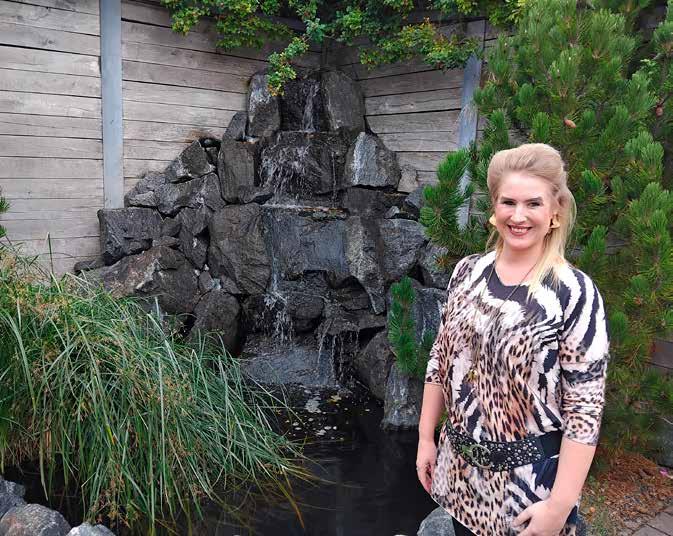 Michaela Hørdum i den »japanske have«, som hendes mor, Elsebeth, fik etableret i forbindelse med forretningen og beboelsen på Lodbergvej i Søndervig. Foto: Ole Tang.