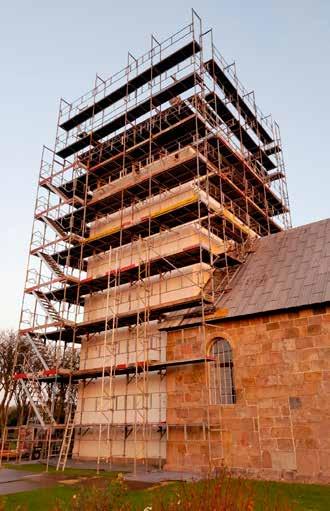 Undervejs i renoveringen var der nervøse dage, når det stormede – og et stillads og indpakning overlevede 28 sek/m vinde, selv om en del rawplugs undervejs blev revet ud af murværket.