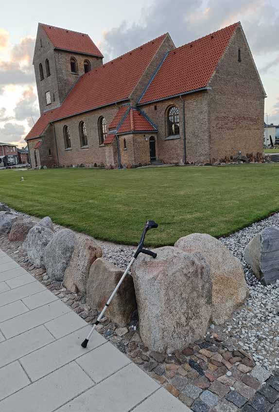Dette mindede mig om et lidt sjovt billede, jeg tog, da jeg en aften var ude for at putte vores yngste datter: en stok, der var blevet sat eller glemt ved kirken. Og jeg kom til at tænke på, om der mon gemte sig en god historie her. Var det historien om en, der bad til Gud og blev helbredt og derfor ikke havde brug for den længere? … Måske? Måske ikke? Så ja, sig ikke, at der ikke sker spændende ting her på sydsiden … :D