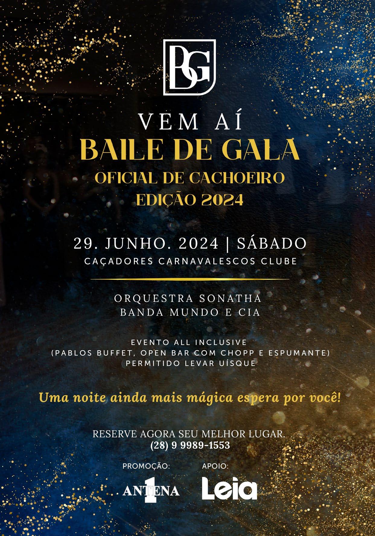 Já marcou na agenda? O Baile de Gala de 2024 será realizado no dia 29 de junho. Já começaram as reservas e vendas de convites. Para garantir o seu lugar no evento mais bacanérrimo do Estado, ligue (28) 99989-1553. Você tem um encontro marcado com as tradições de Cachoeiro!