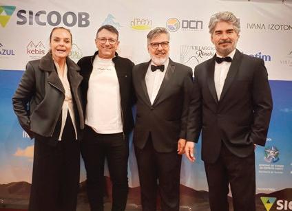 Cumprindo a tradição cachoeirense de amor à arte e à cultura, o empresário Anderson Del’Puppo marcou presença no 7⁰ Fest Cine Pedra Azul, em Domingos Martins, no último sábado. Na foto, ele está entre os organizadores Patrícia Secco (à esquerda), Marcoz Gomez e Alex Reis (à direita).