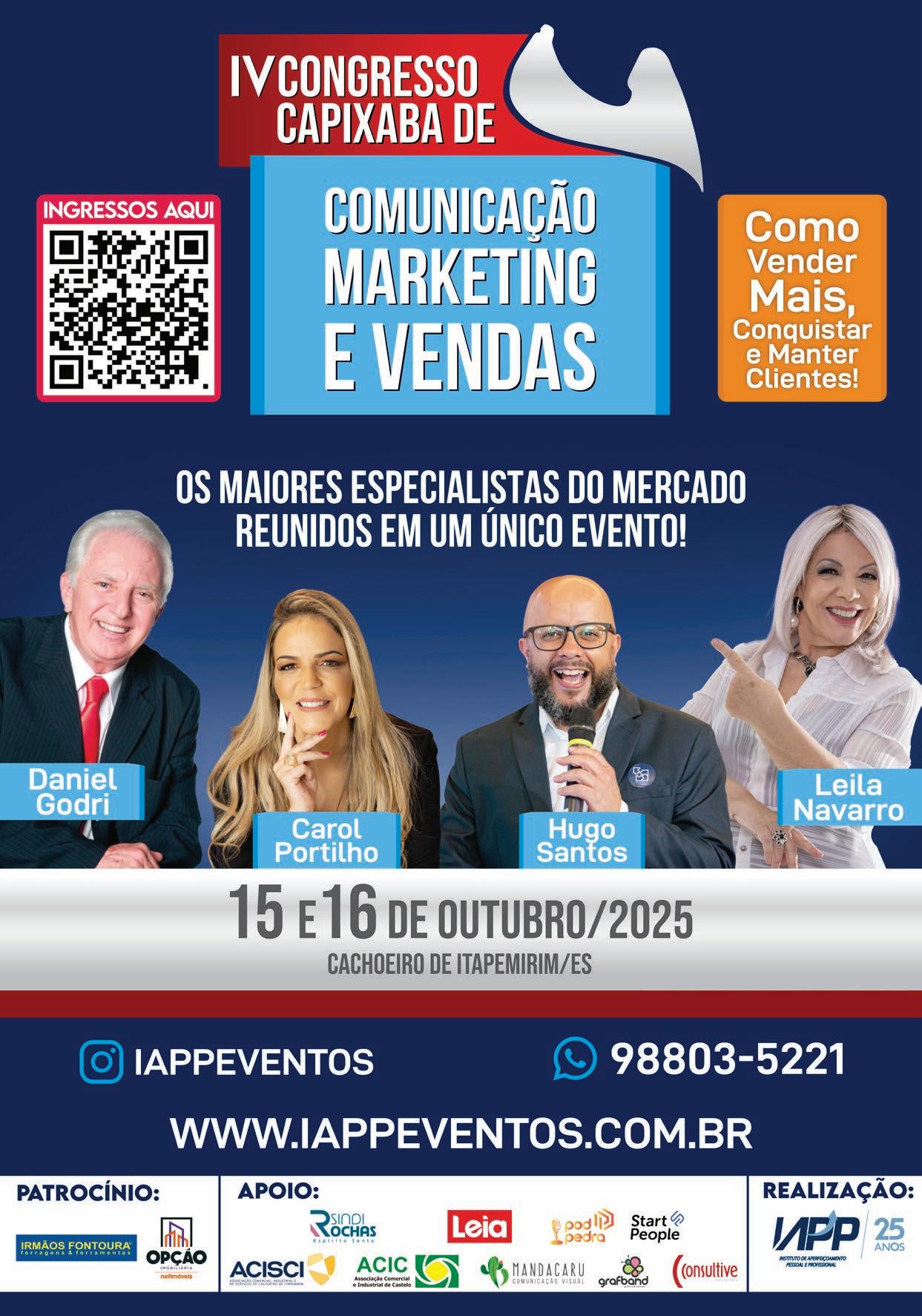O evento tem ainda o apoio do HIFA, CEMES, Multivix e SISTEC, além de suporte institucional do Instituto Sustentabilidade Brasil, Mobilização Capixaba pela Inovação (MCI), FAPES, Governo do Espírito Santo, SECTI, SESA, ICEPi e Prefeitura de Cachoeiro de Itapemirim.