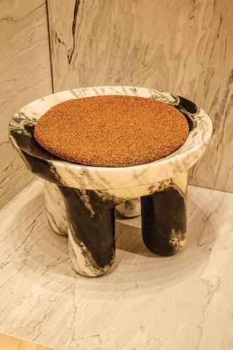 Durante a MARMOMAC Brasil, os visitantes tiveram a oportunidade de conhecer de perto a delicadeza e a imponência das peças desenvolvidas pelo estúdio. Cada detalhe revela um processo criativo que valoriza a matéria-prima em sua forma mais pura, respeitando suas características e realçando sua beleza singular.