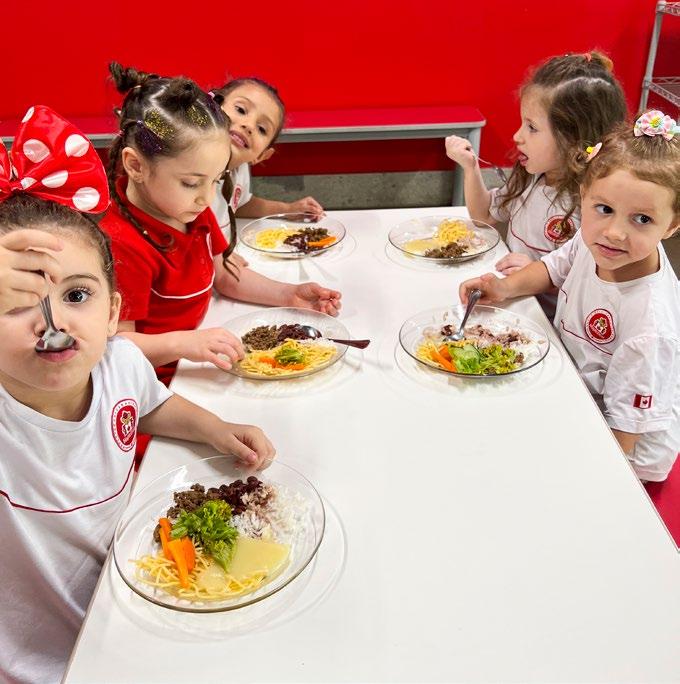 em casa cansadas, adormecem no trajeto e acabam pulando o almoço — um hábito que pode comprometer o rendimento escolar e a saúde. Para evitar esses impactos, a Maple Bear Cachoeiro passou a oferecer aos pais a opção de seus filhos almoçarem na escola, garantindo que recebam a nutrição necessária antes de descansar.
