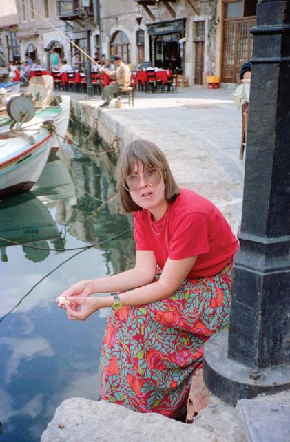 Application of Photoshop's 'Auto Color' has created a good positive image. Having just enjoyed a charcoal-grilled fish during lunch at a waterfront taverna in the harbour of Rethymnon in Crete, my wife Linda is about to offer the last of her bread roll from that lunch to the small fish swimming in water.
