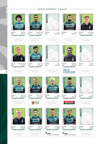 Position: Hooker Born: 16/09/01 ACADEMY GRADUATE AVA I L A B L E T O SPONSOR