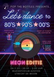 LET's DANCE dit keer in neon editie: Azotod vol met blacklights. Met een party gift voor iedereen die vóór 22 uur binnen is passend bij het thema. Dus trek je fluoriserende beenwarmers met bijpassend t-shirt aan.