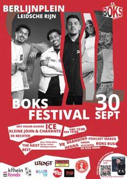 De line up van het Boks Festival op het Berlijnplein is bekend: Kleine John & Chavante, ICE, Sarita Lorena, De Rechter en Amber Mo. Verdere programma: The Next Best; jury: Philly More, Sarita Lorena en Shafique Roman, BOKS Bus, haren vlechten, henna, VR, fashion & branding
