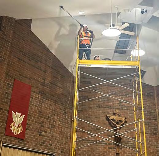 CLEAN-UP OF SMOKE & ASH DAMAGE—The focus has been on restoration and cleaning the smoke and ash damage to the parish building & sanctuary in preparation for re-opening on the weekend of Nov. 22-23. “We just feel blessed that nobody got hurt and all of our fire alarms and everything worked the way they should,” said Briana James, parish secretary. “The fire department has said that if our firewalls and fire doors hadn’t closed, we probably would have lost the whole building.” Since the fire on Nov. 4, the parish has essentially been closed, and parishioners have been attending Our Lady of the Lake Parish, in Branson, for Mass. (Submitted photo)