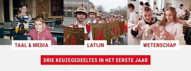 In het eerste jaar kiezen de leerlingen uit drie keuzegedeeltes: taal & media, Latijn en wetenschap. In elk keuzegedeelte is er ruimte voor verkennen, versterken en verdiepen. We raden de leerlingen aan om te kiezen vanuit zijn/haar interesses en talenten.