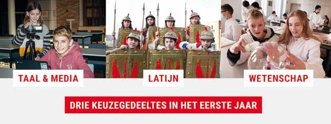 In het eerste jaar kiezen de leerlingen uit drie keuzegedeeltes: taal & media, Latijn en wetenschap. In elk keuzegedeelte is er ruimte voor verkennen, versterken en verdiepen. We raden de leerlingen aan om te kiezen vanuit zijn/haar interesses en talenten.