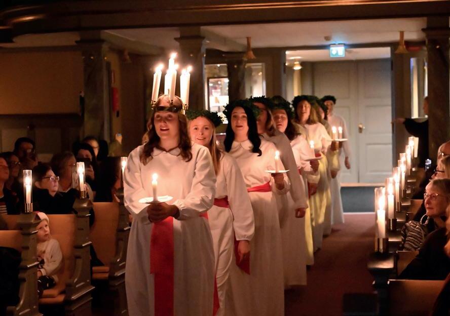 När vi firar traditionell Luciahögtid i Degerfors kyrka medverkar församlingens barn/ungdomskörer och dansgrupper. Det är gratis inträde med möjlighet att skänka en frivillig gåva till ACT Svenska kyrkans julkampanj. Under Luciaveckan lussar vi även på Letälvsgården.