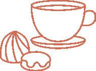 Vi serverar kaffe, te, saft, smörgås, bulle och kaka.