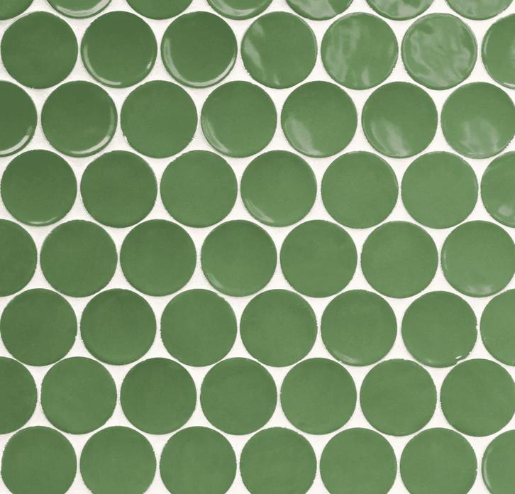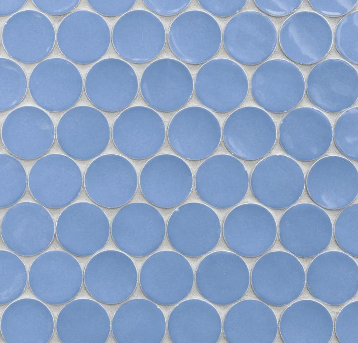 Dimensional ceramic mosaic tiles with a slight concave surface in a variety of vibrant colors. The exquisite luster is created through a highly specialized, centuries-old glazing technique.