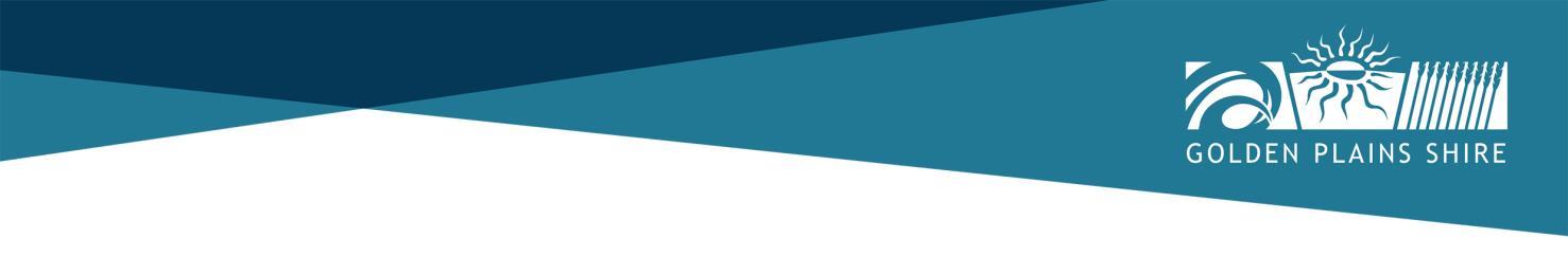 • Visit Council’s website at goldenplains.vic.gov.au.