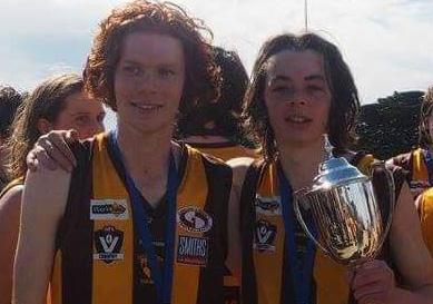 Pictured left, Jye McEwan & Matt Haste, with the Reserves cup Premiership playing for Inverleigh Colts in 2017.