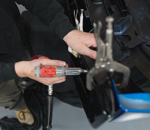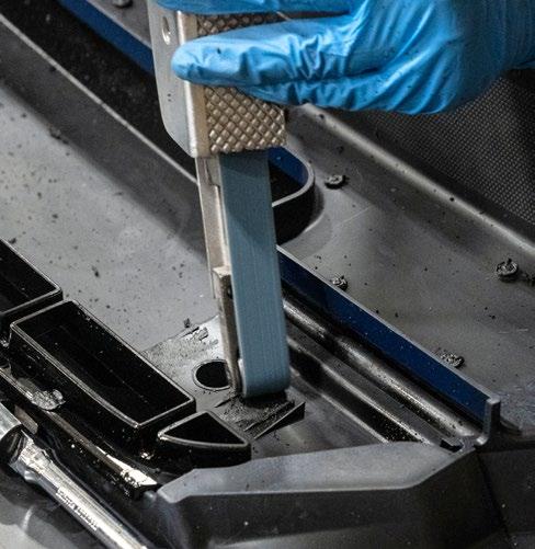 For at fastgøre den korrekt skal tappene smeltes på plads og klemmen bruges til at holde. Flyt klemmerne, mens du smelter langs kofangeren.