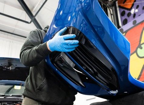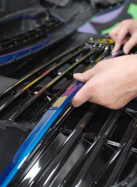 Isæt de nye plader på den nye kofanger ved at klikke dem på plads. Bemærk: Der skal skæres huller til parkeringssensorer i pladerne før lakering og montering, hvis de ikke allerede er der.