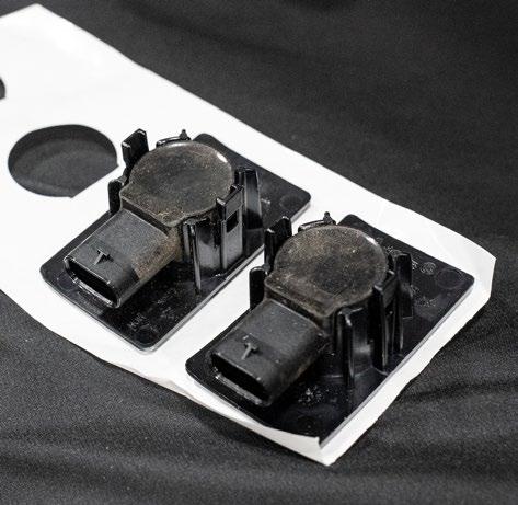 Fjern dobbeltklæbende klæbemiddel fra parkeringssensorens beslag, klar til at bruge hurtigtørrende lim (Innotec), da dette er mere robust.