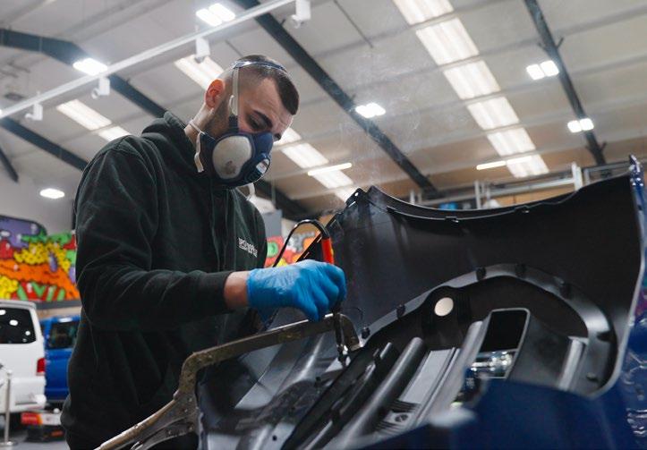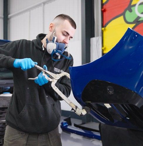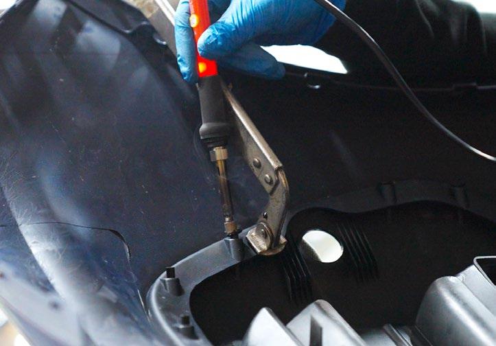 De lipjes moeten met behulp van klemmen op hun plaats worden gelast. Beweeg de klemmen mee terwijl u langs de bumper heen gaat.