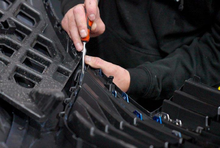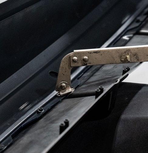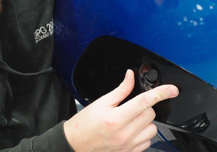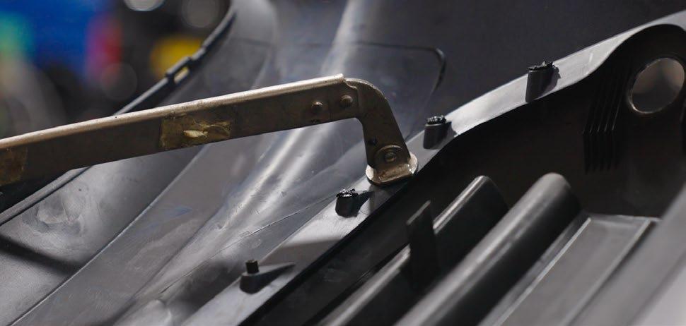 Schuur de plastic lamellen bij de parkeersensoren zodat de lijm op de houders van de parkeersensoren (vier in totaal) kan hechten.