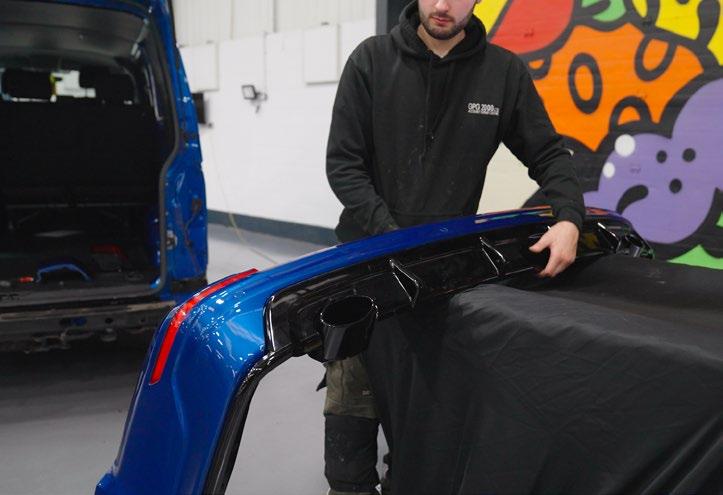 Zet de originele bumper opzij en plaats de LV-R op de schraag. Monteer de onderste diffusor aan de onderkant van de nieuwe bumper en gebruik de meegeleverde klemmen om hem op zijn plaats te houden.