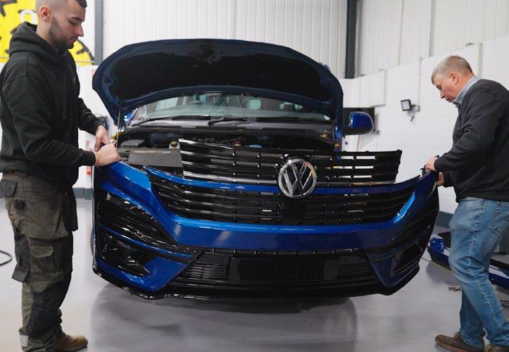 Om te beginnen moet de fabrieksvoorbumper worden verwijderd volgens de richtlijnen van VW.